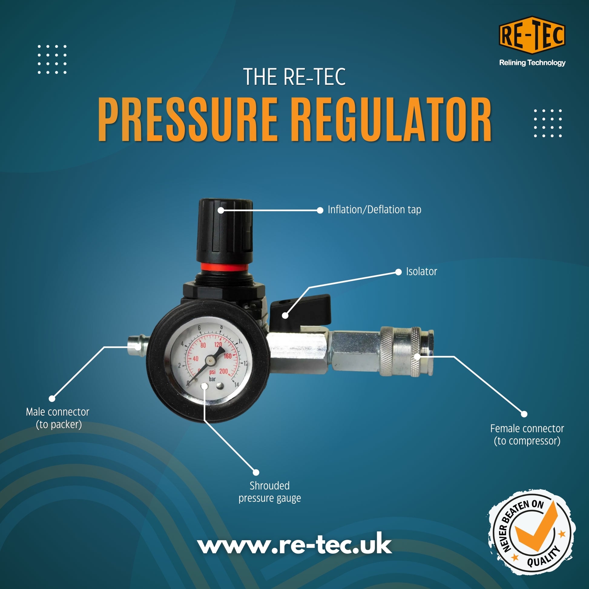 The Re-Tec Pressure Regulator is used to control the air pressure when inflating the packer during the patch lining process.